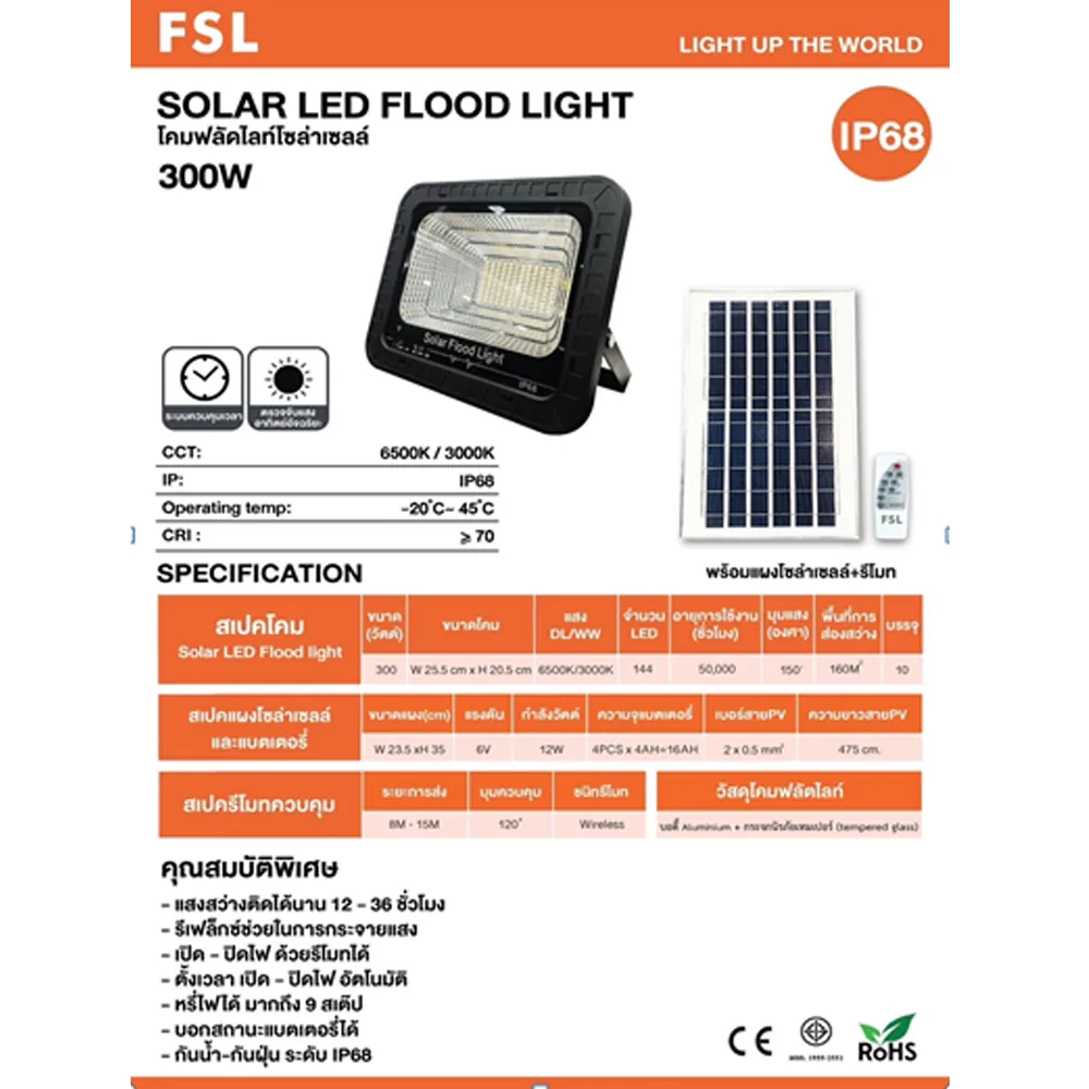 / โคมฟลัดไลท์ โซล่าเซลล์ 300 W